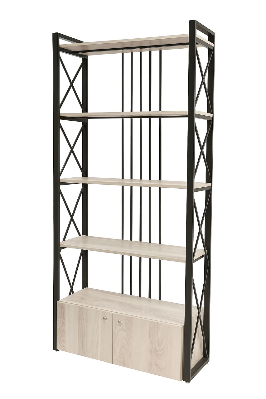 استند مدرن و صنعتی ۲×۹۰ با ترکیب فلز مشکی و صفحات چوبی روشن، انتخابی شیک و کاربردی برای دکوراسیون منزل یا دفتر کار شماست. طراحی طبقات باز در کنار کمد پایینی، فضای کافی برای نمایش دکوریها و همچنین نگهداری وسایل شخصی یا اداری فراهم میکند.