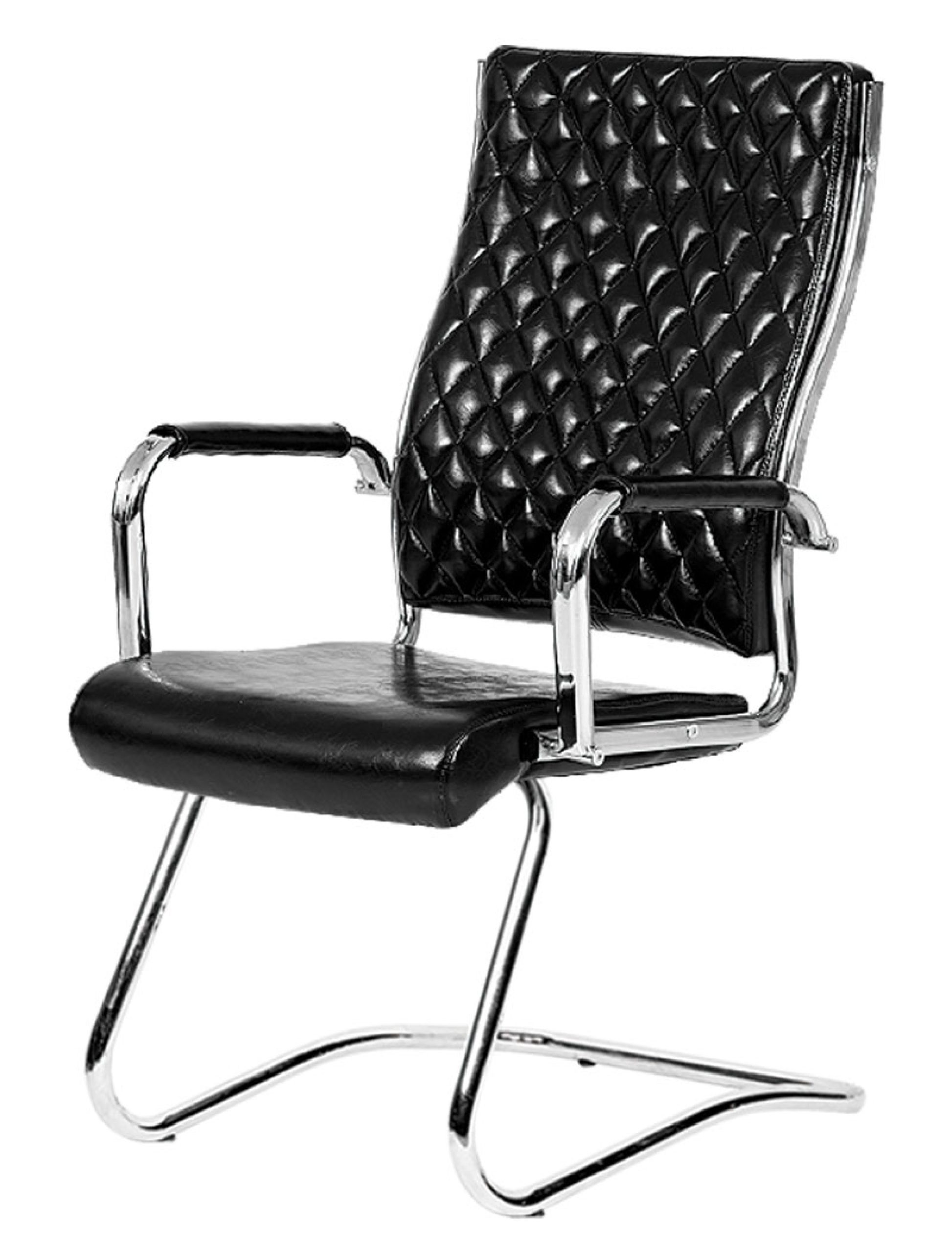 این صندلی با لمسه‌دوزی لوزی‌شکل، روکش چرمی و دسته‌های فلزی کروم، جلوه‌ای شیک و مدیریتی به فضاهای کاری می‌بخشد.